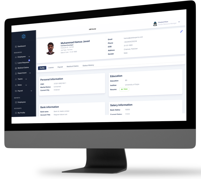 The HR Mis project is a comprehensive system consisting of a mobile app for employees and a web portal for management. The portal allows HR managers to manage human resources, business processes, and data easily. Features include employee lists with filtering and editing options, leave and medical claim tracking, request approvals with role hierarchies, and profile management. The project uses ReactJS and Material UI for the front-end and Node for the back-end.